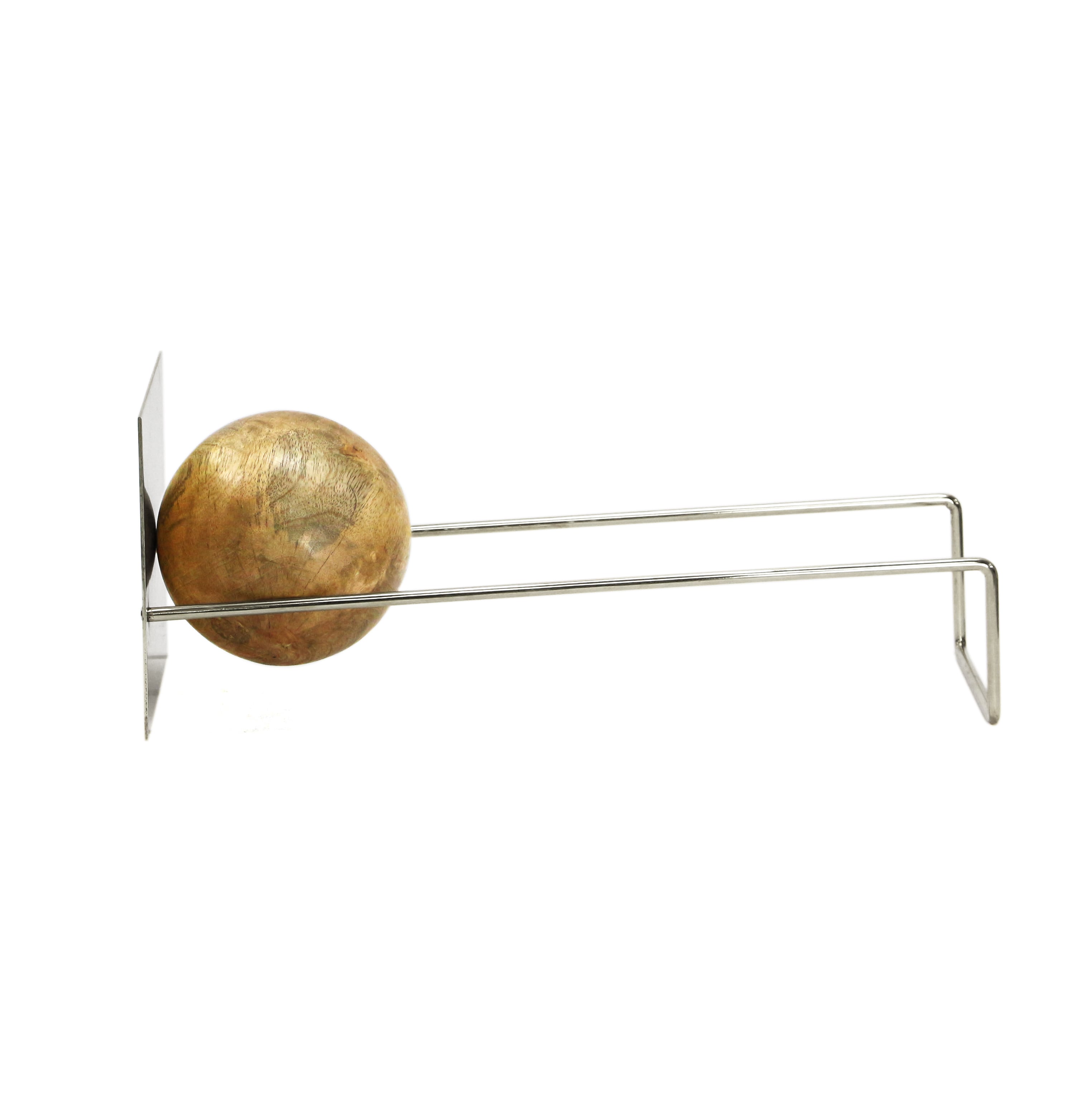 スチールフレームとウッドボールを合わせたブックエンド(本立て)。