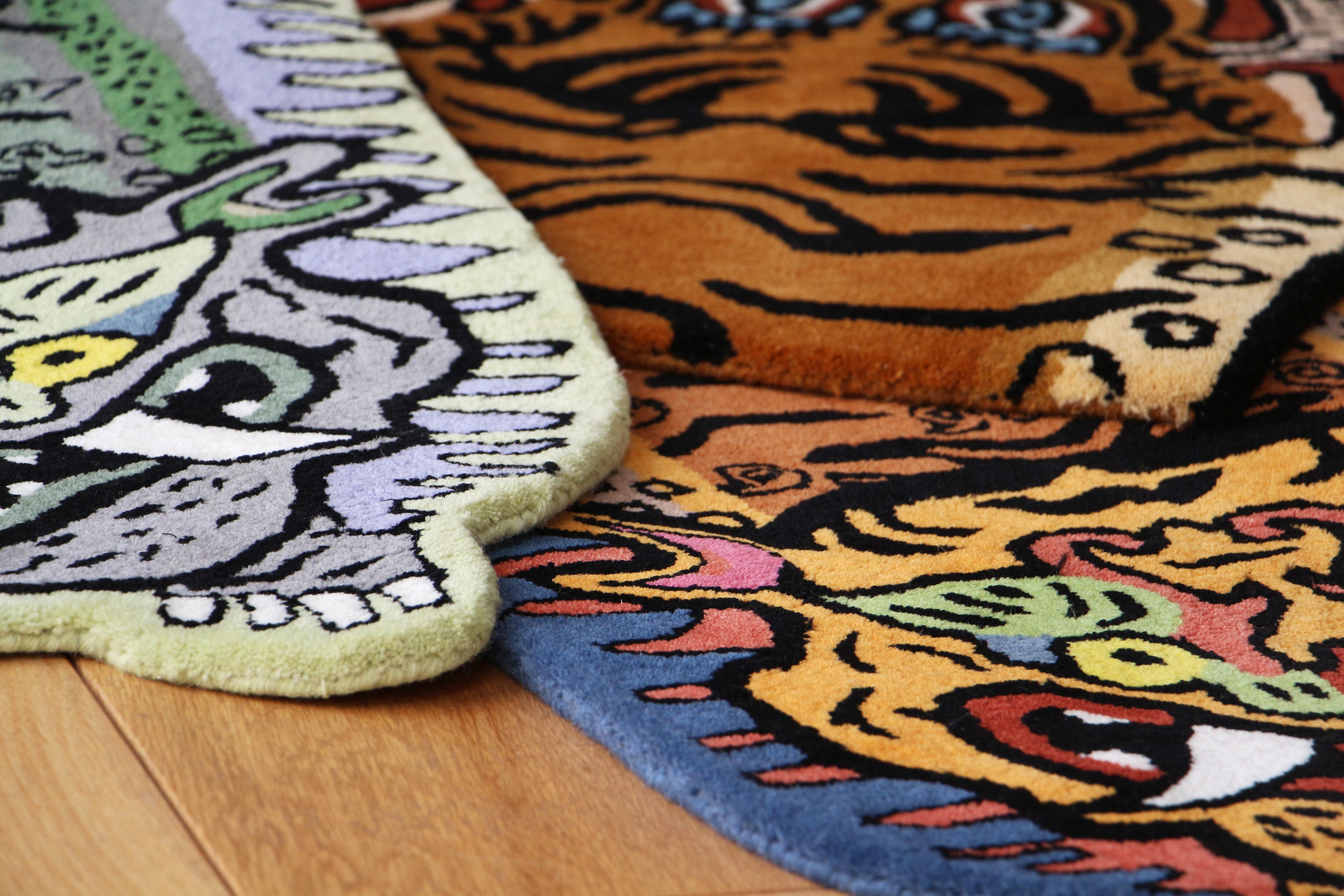世界4大絨毯のひとつチベット絨毯の中でも、位の高い僧侶のために作られていた由緒正しいタイガーラグをモチーフにしたラグ。