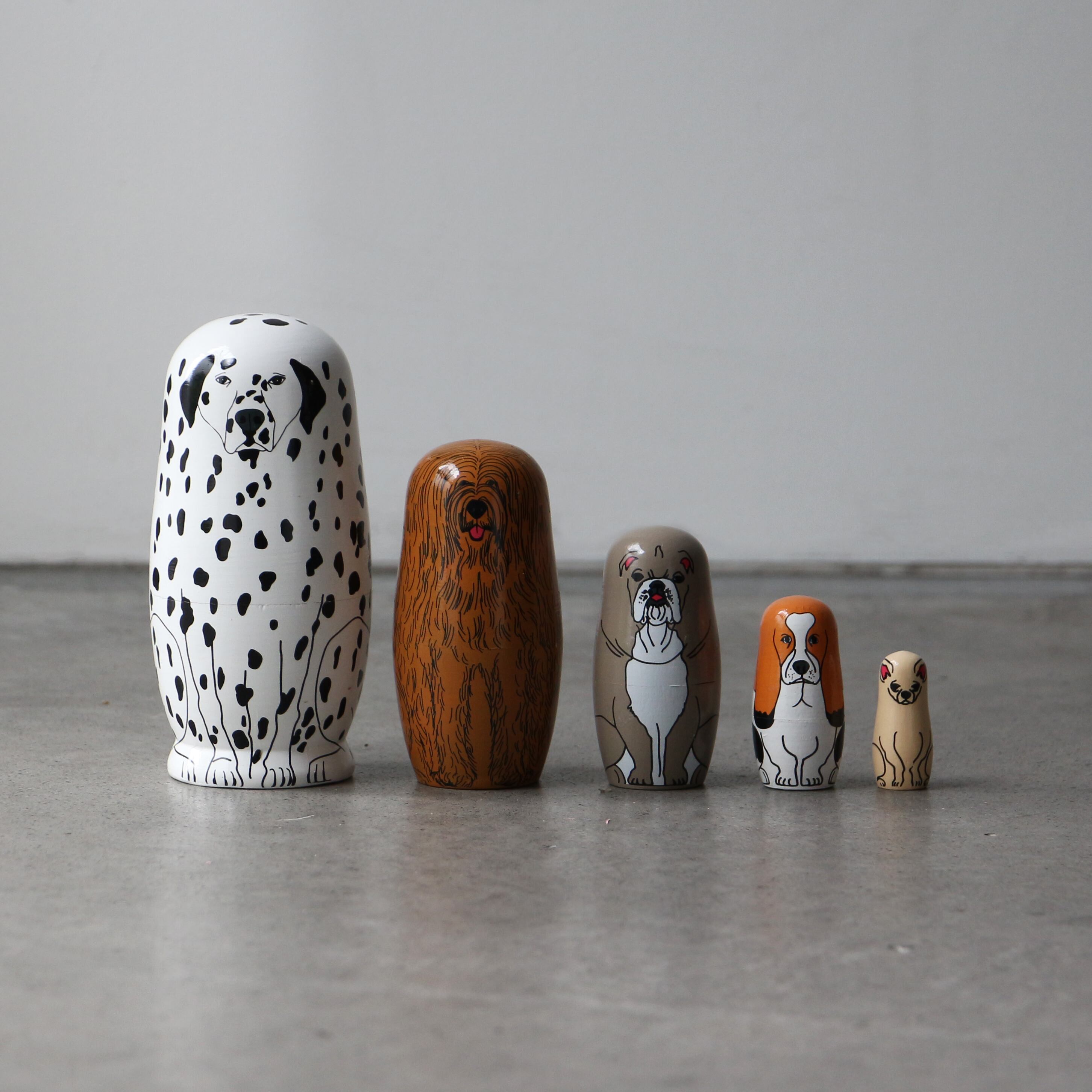 愛くるしい犬モチーフのマトリョーシカ。わたしたちの良き理解者であり、最高のパートナーたちがいつでも側にいてくれます。