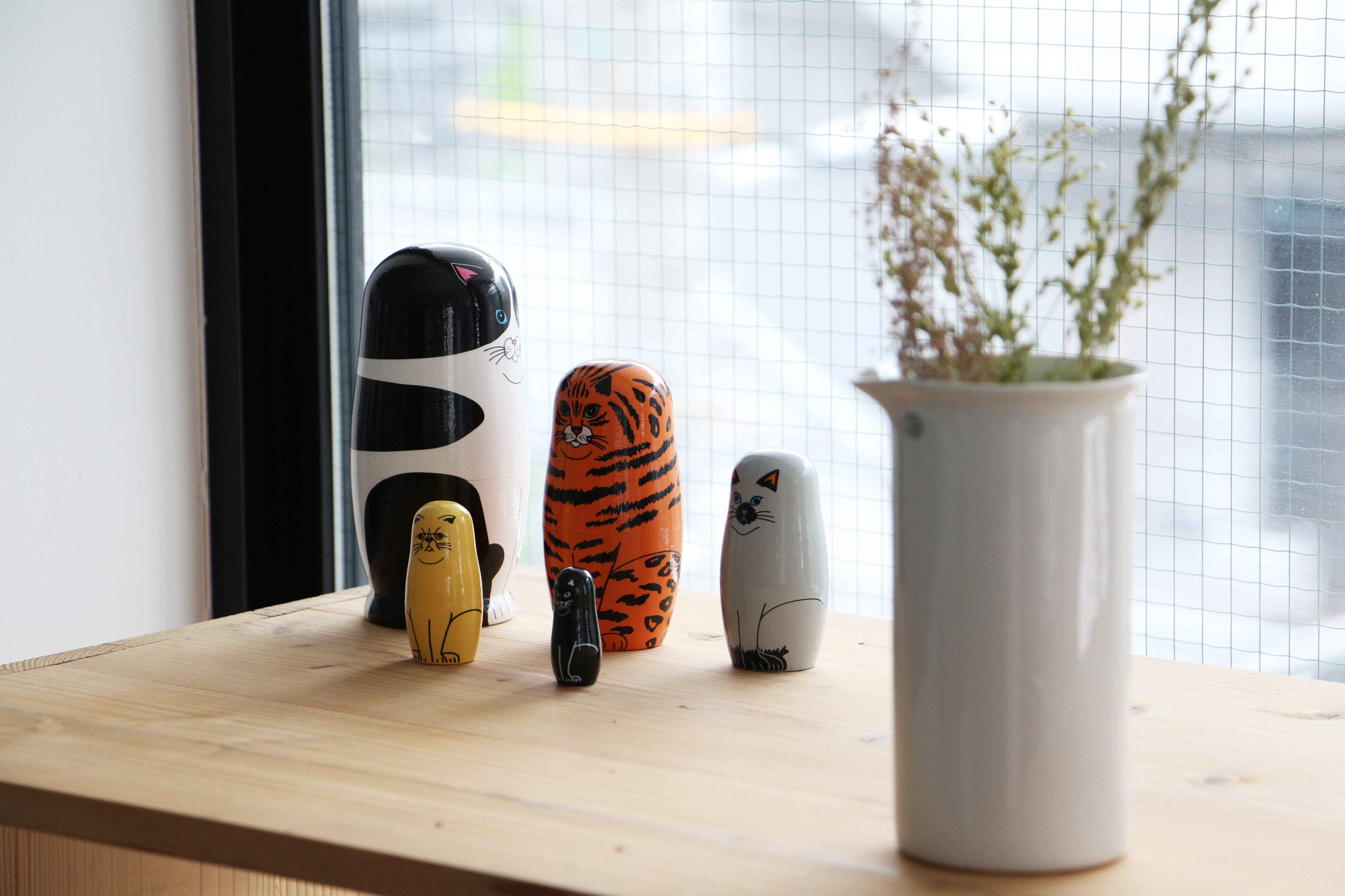神経質で、好奇心旺盛で、衝動的で、フレンドリーで、わがままで、そんないつでも対等な距離感が心地いい。5つの性格を持っているとされる猫のマトリョーシカ。